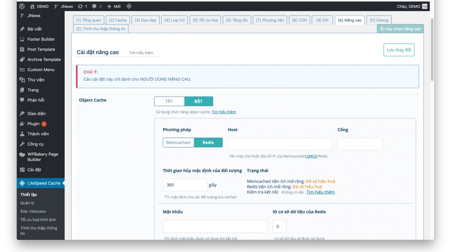 Cài đặt với Plugin LiteSpeed Cache (Khuyên dùng)