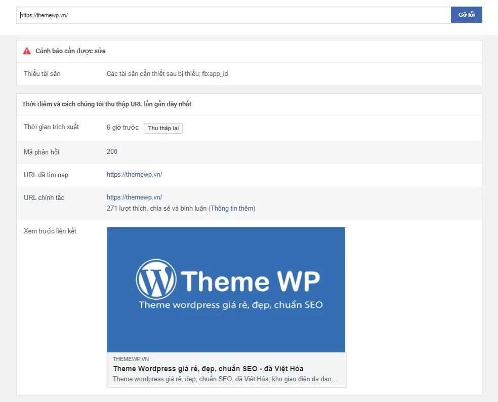 Bước 2: nhập link bạn muốn cập nhật hình ảnh Thumbnail và nhấn nút Gỡ lỗi
