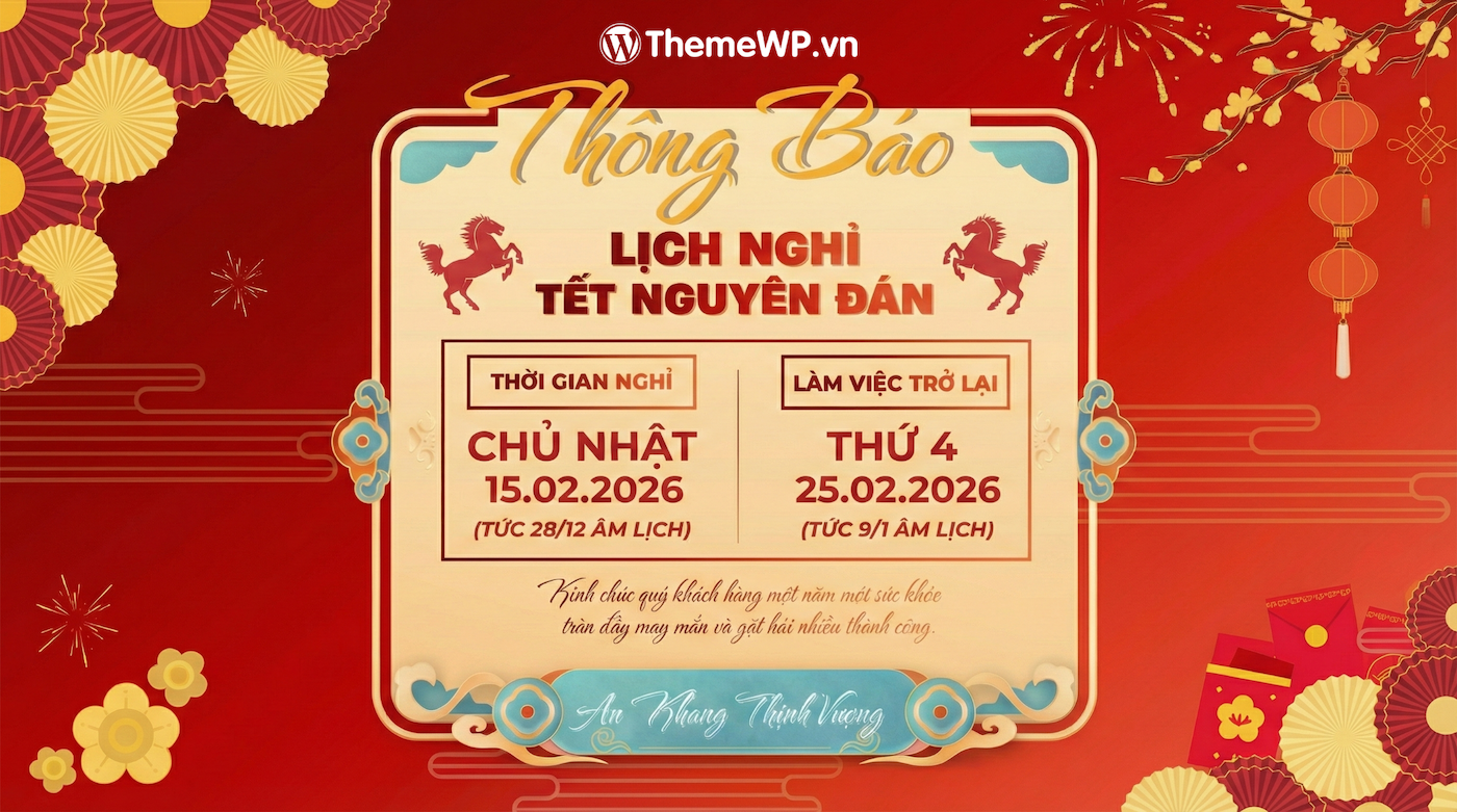 Nhân dịp năm mới, ThemeWP.vn kính chúc Quý Khách cùng gia đình một năm mới An Khang – Thịnh Vượng – Sức Khỏe Dồi Dào – Vạn Sự Như Ý.